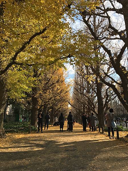 東京賞銀杏有幾個點,明治神宮外苑、駒澤奧林匹克公園、東京大學本鄉校區、慶應大學日吉校區、國營昭和紀念公園。時間大約在11月中旬到12月中旬,不同的點會有不同時間,大概維持兩星期,想看銀杏的人最好先上日本氣象局的網站查當年的銀杏前線,就是開花(?)預報。